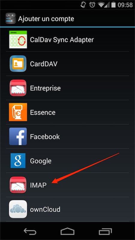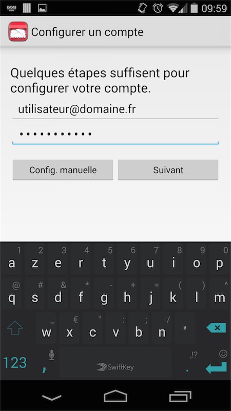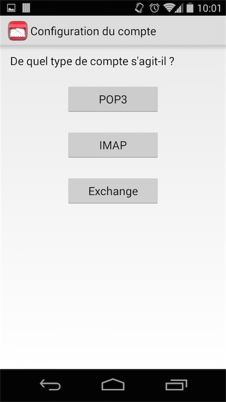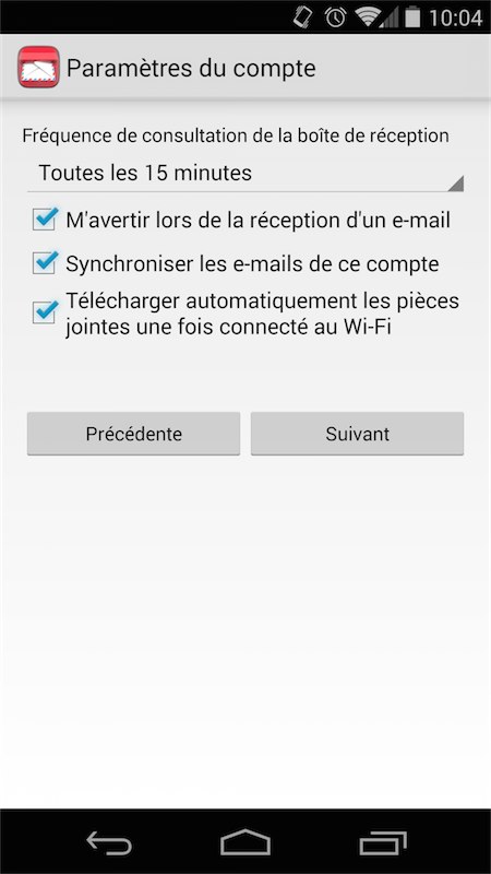 Voici les différentes étapes de la configuration d'un compte email sur Android (Android 4.4 dans ce cas).
