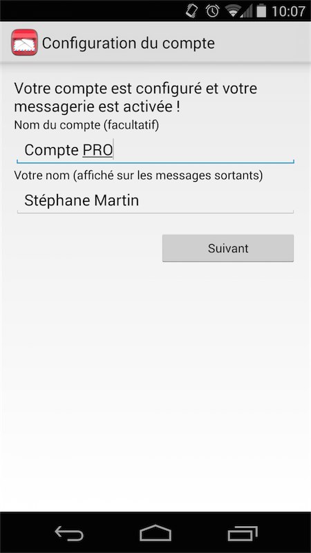 Paramétrez le nom de votre compte et le nom qui sera affiché dans les emails que recevront vos contacts. Vous avez terminé. |