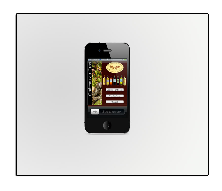 Création d'une version originale en quelques pages du site Internet du Château du Cros. Présentation des vins, Oenotourisme, diaporama full screen et effets discrets d'animation.