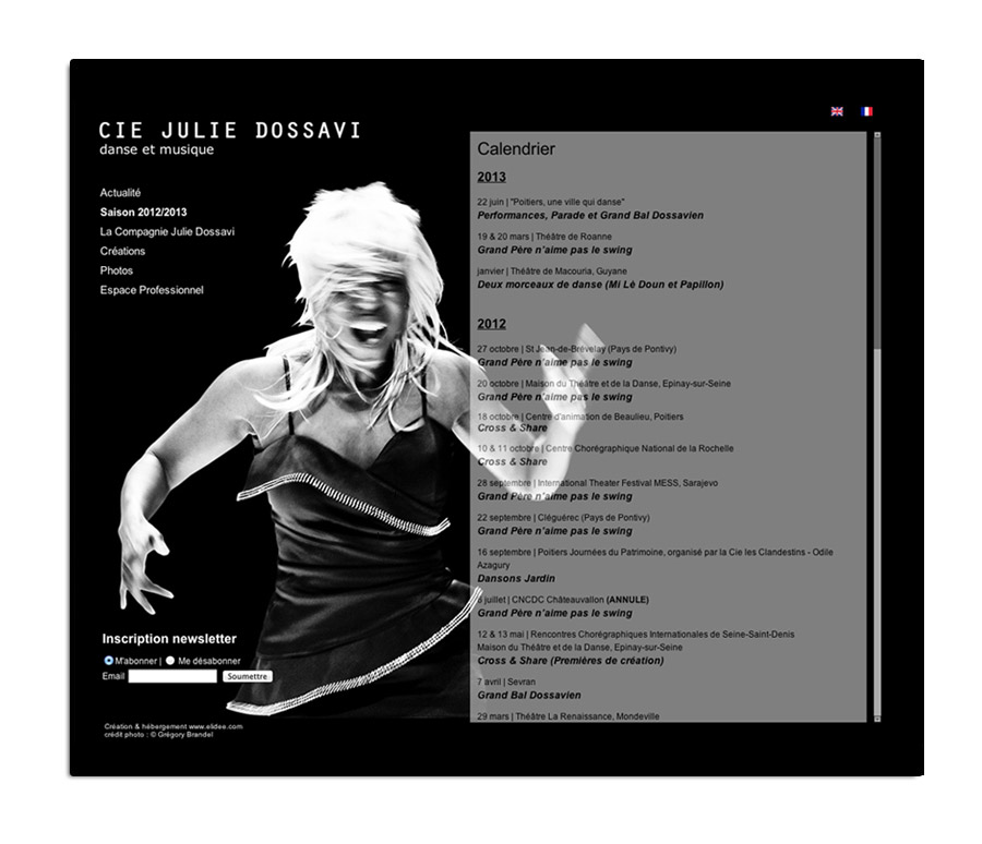 Julie Dossavi, chorégraphe, danseuse. Julie Dossavi a créé une danse contemporaine très personnelle, hybride et robuste, sensuelle et plastique, toute en variations de formes et de rythmes. Comédienne confirmée, elle compose des spectacles intimes autour de la condition féminine et du phénomène de la double culture.