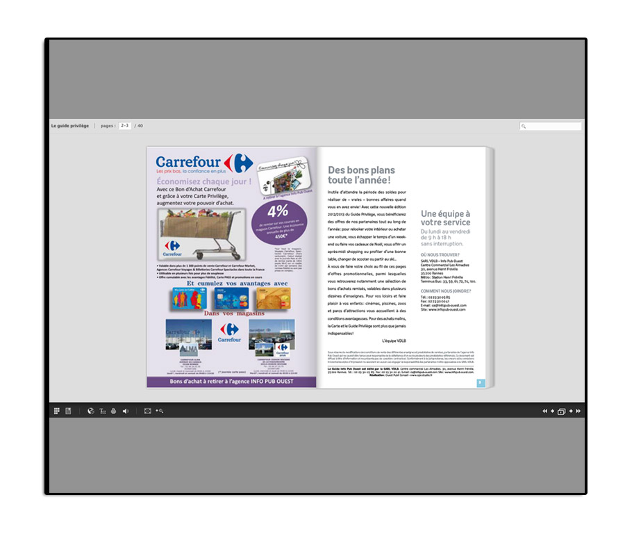 Création d'un catalogue feuilletable d'après les fichiers PDF fournis. Compatible PC Mac sous Flash et iPad, iPhone sous HTML 5. Fonctions avancées comme marque page, partage, personnalisation, etc...