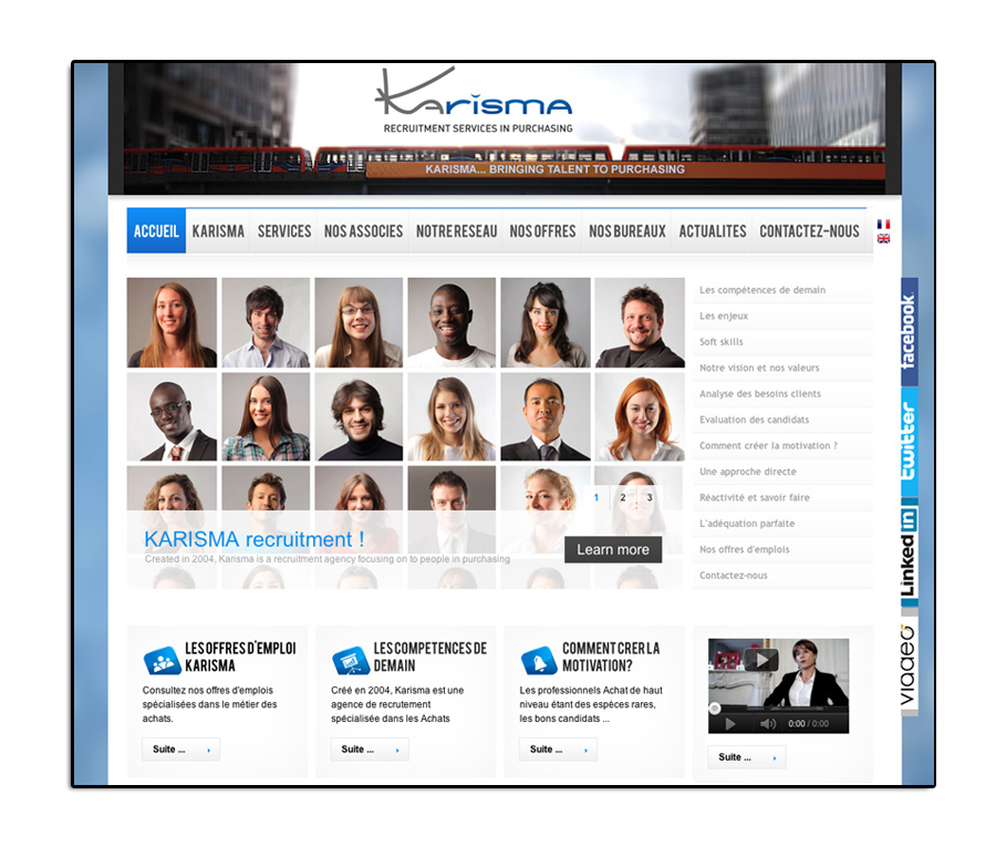 Développement entièrement personnalisé en 2 langues avec une interface d'administration complète pour gérer les candidatures et les offres d'emplois.