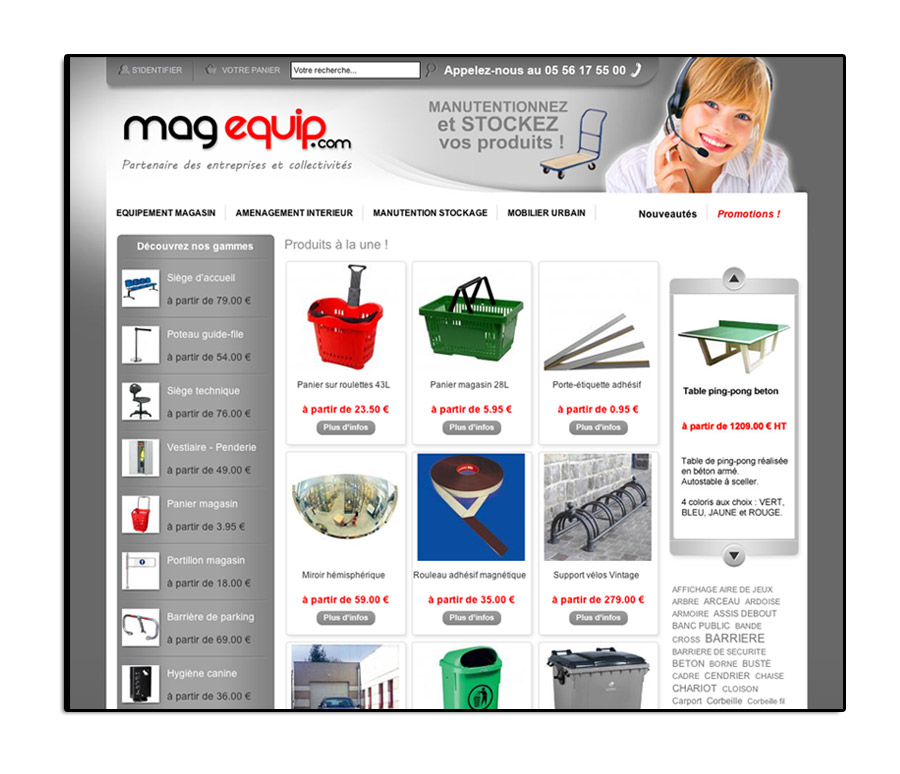 Equipement de magasin, aménagement intérieur, manutention, stockage et mobilier urbain sont les univers proposés par Magequip.